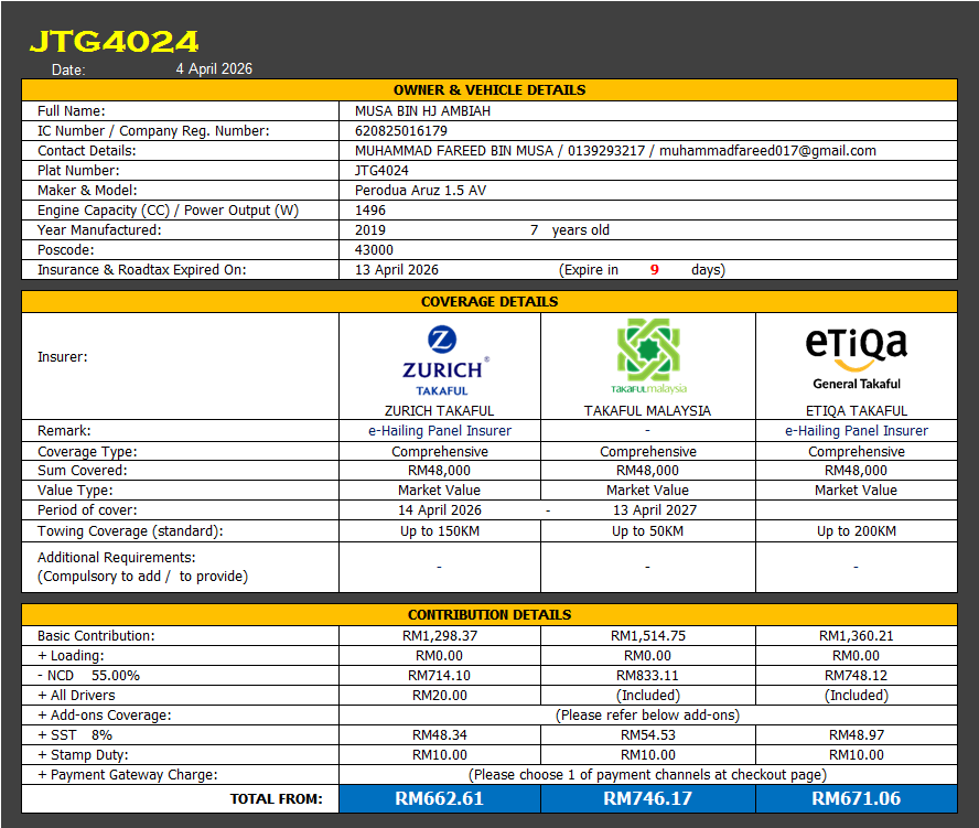 Takaful & Road Tax Renewal