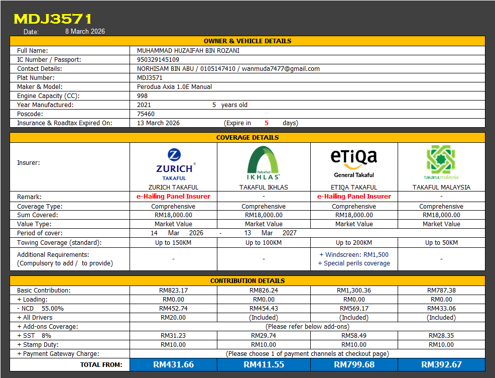 Takaful & Road Tax Renewal