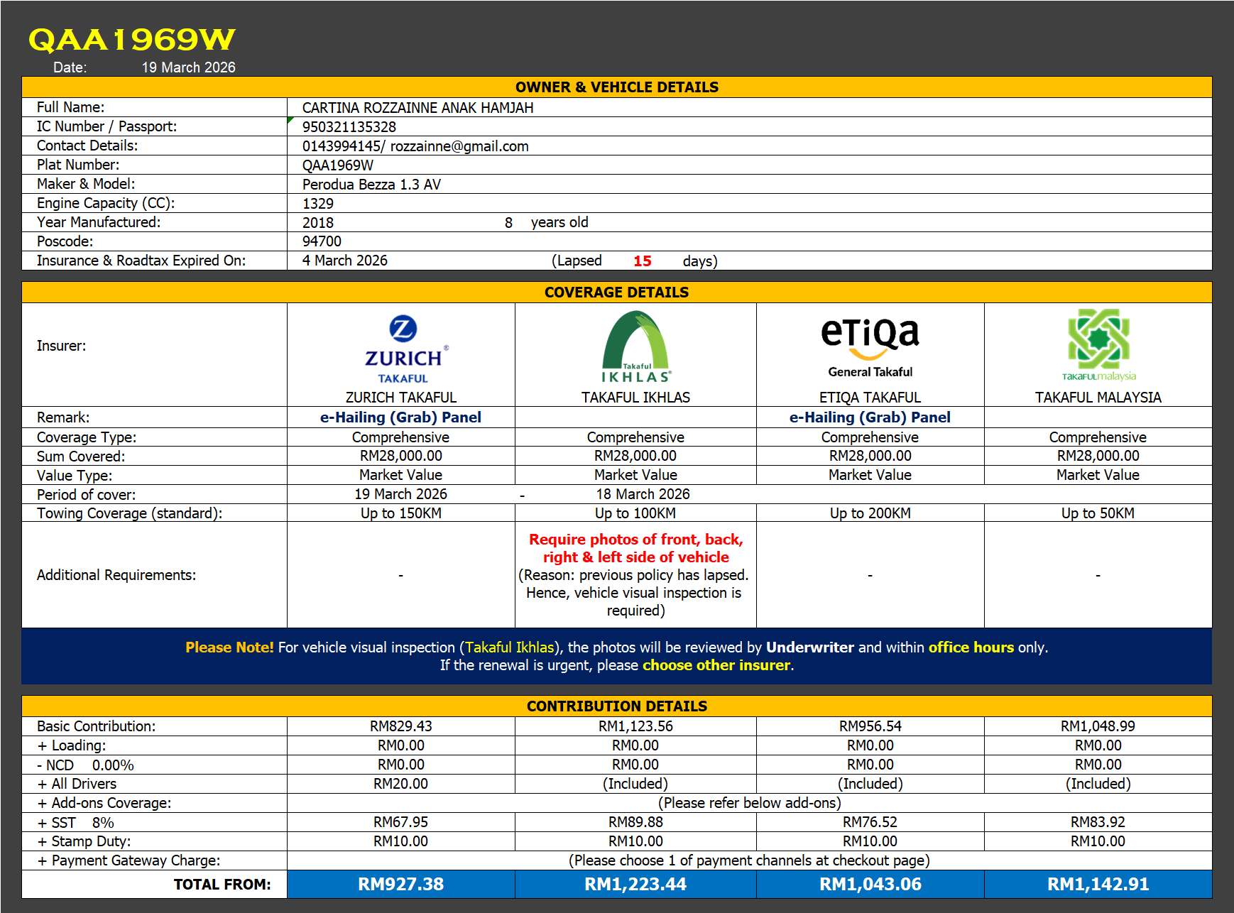 Takaful & Road Tax Renewal