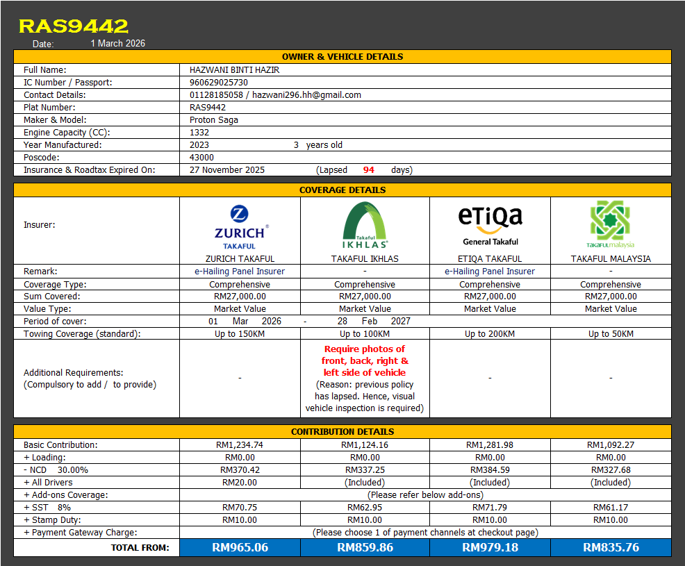 Takaful & Road Tax Renewal