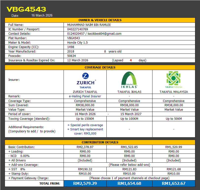Takaful & Road Tax Renewal