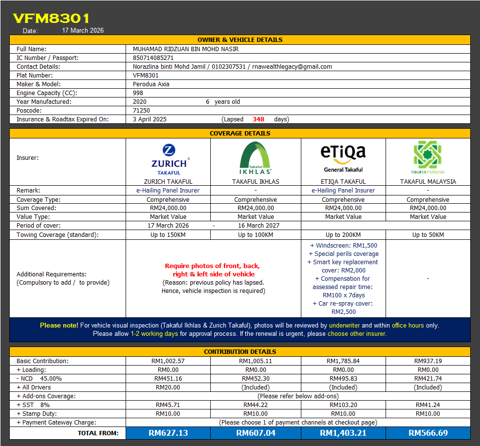 Takaful & Road Tax Renewal