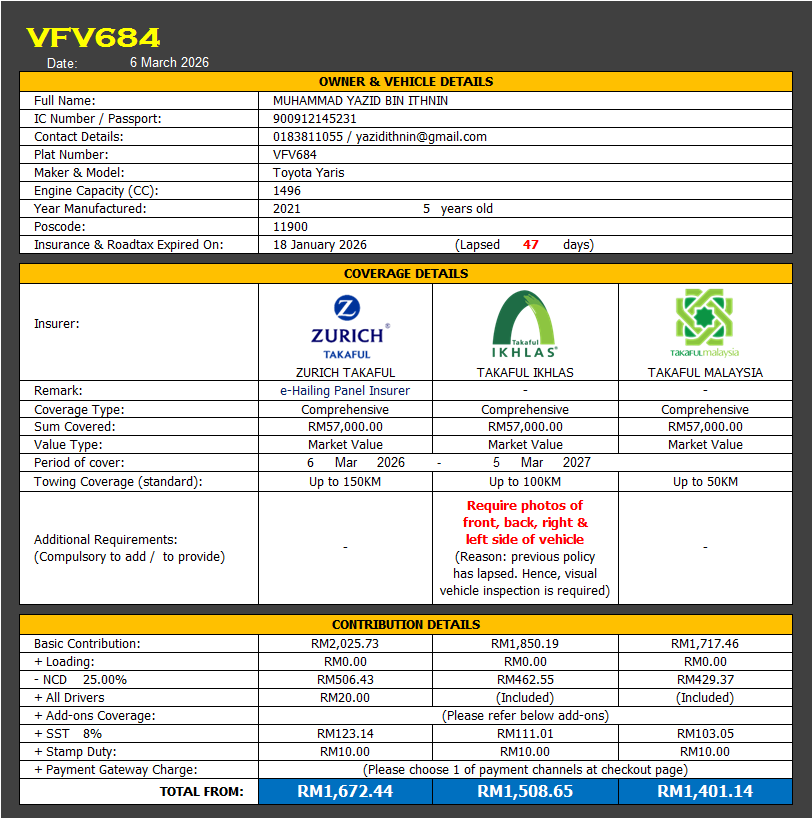 Takaful & Road Tax Renewal