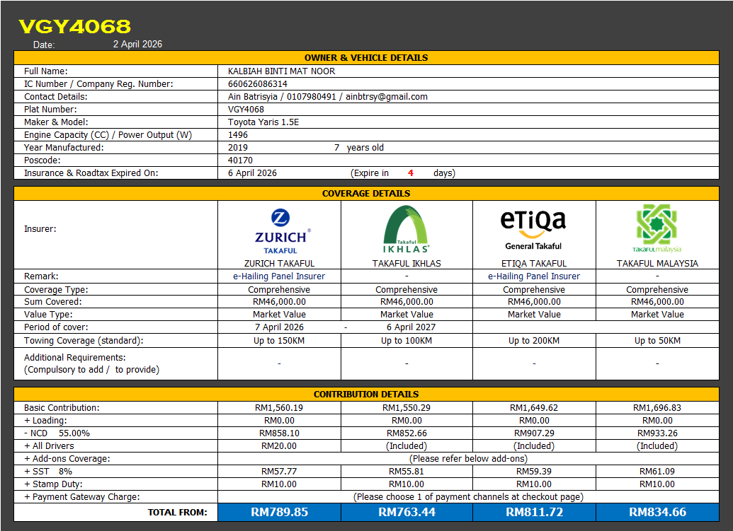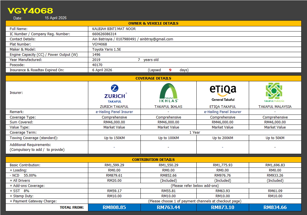 Takaful & Road Tax Renewal