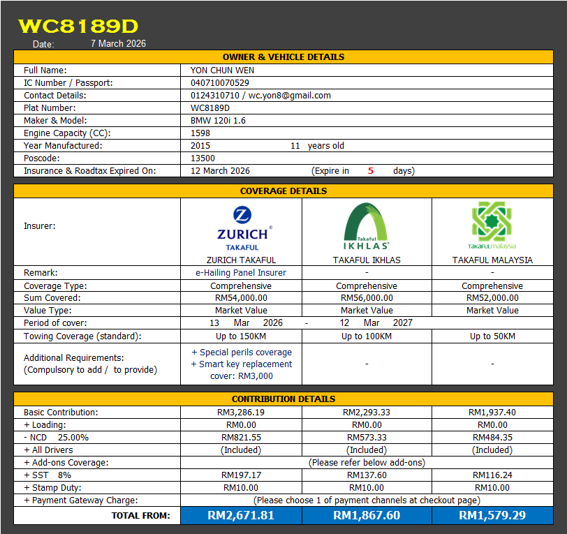 Takaful & Road Tax Renewal
