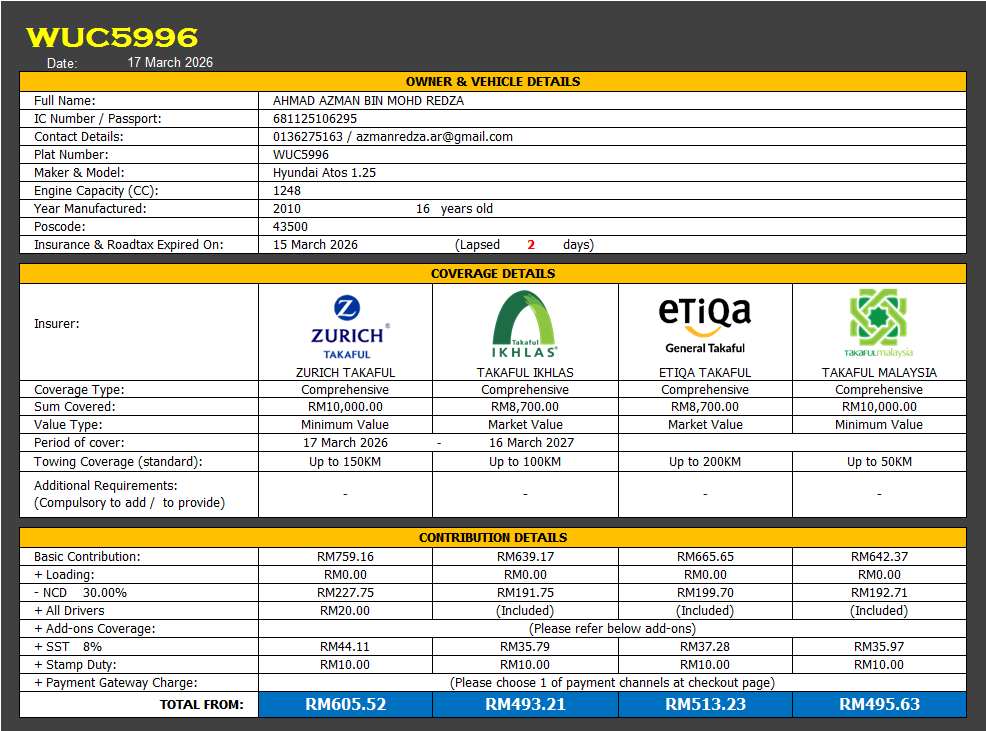 Takaful & Road Tax Renewal